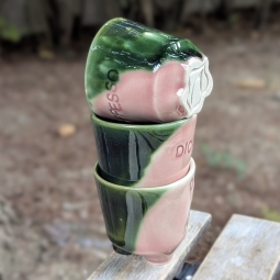 "Jesteśmy bardzo szczęśliwymi posiadaczami pełnego kompletu kawowego z MONIfaktury robionego na indywidualne zamówienie (szklaneczki do espresso, capuccino i większe kubki na przelewy i kawy mleczne). Zestaw sprawdza się fantastycznie, więc postanowiliśmy rozszerzyć kolekcje. Wybór padł na cukiernicę i ramenówki i... pełen zachwyt. (...)"