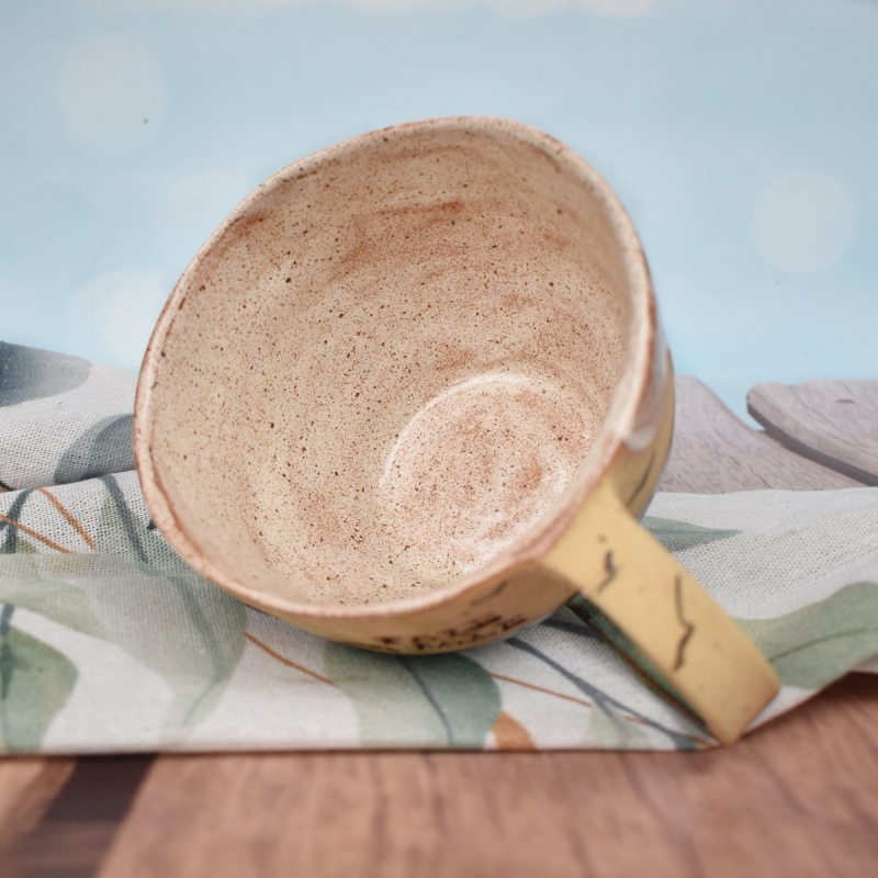 The interior covered with beige spotted glaze. In the same color made cloud motif.