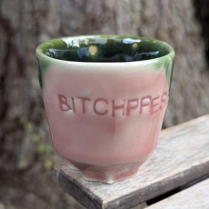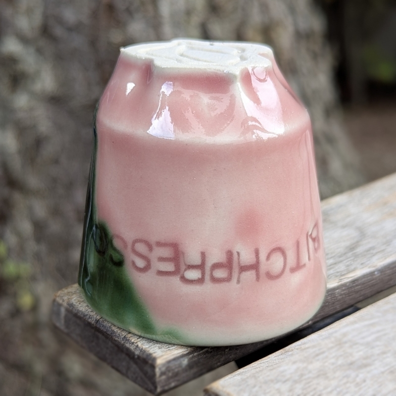 In addition to the linguistic joke, the cup also has a non-standard bottom- luckily, I'm my own boss and I can do things like that ;)