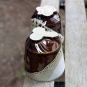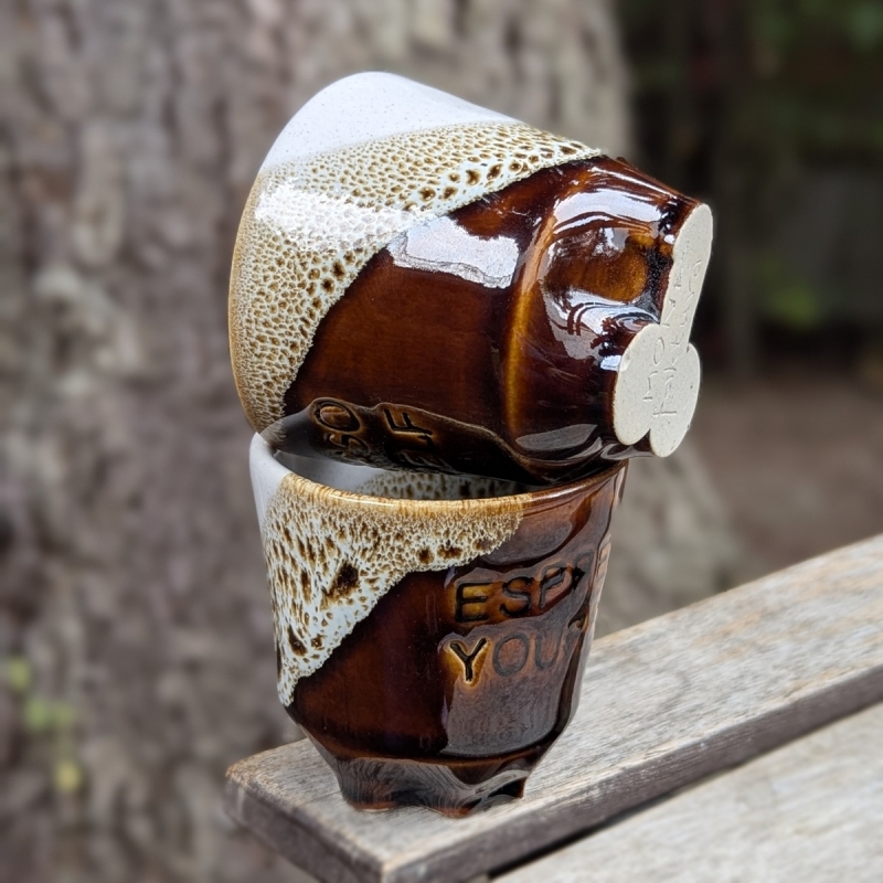 The cup is covered with white and deep brown glaze. This combination is stunning. Each piece is unique, so the glaze pattern may vary slightly on your item. The colors may be more or less intense on individual pieces—the charm of handmade items.