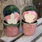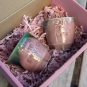 The set includes 2 cups (male and female)- covered with green and pink glaze. Each one is unique, so the glaze pattern may vary slightly on your piece. The colors may be more or less intense in individual pieces- the charm of handicrafts.