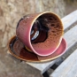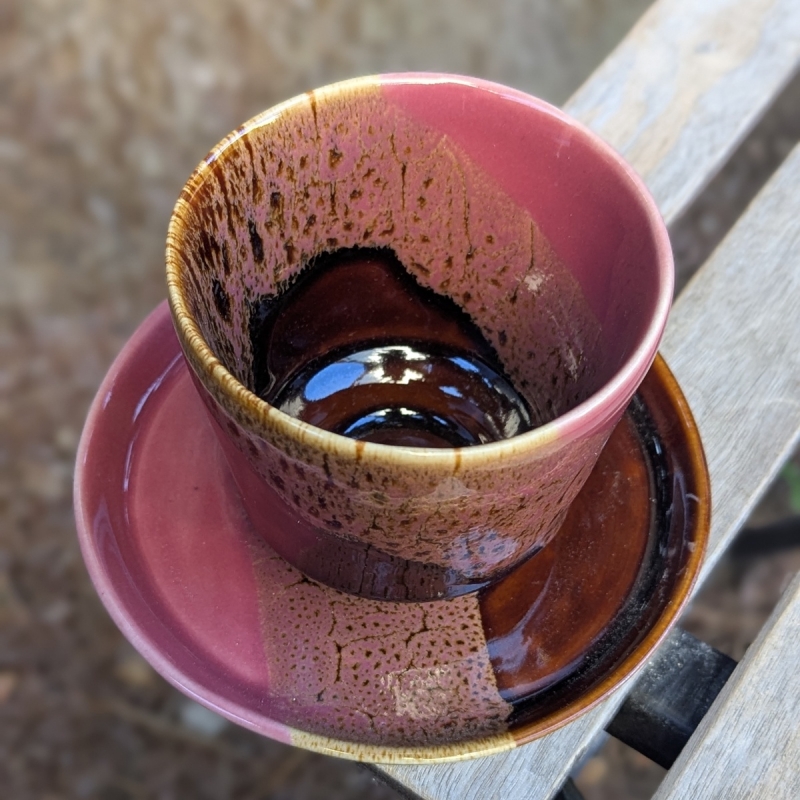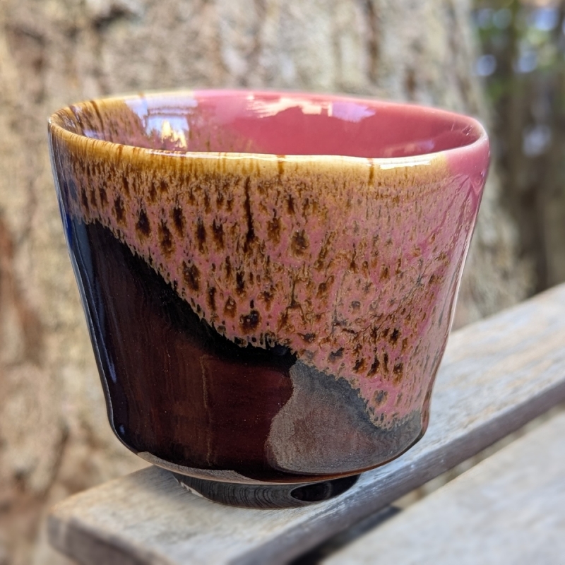 The cups are minimalist in their form - trapezoidal shape, comfortable to use. Pink and brown color forming unique patterns catches the eye. Each pattern is unique.