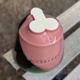 Mug was covered with beige and pink glossy glaze. Each mug is unique, so the arrangement of glazes may differ slightly on yours.