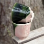 Czarka pokryta zielonym oraz różowym szkliwem. Każda jest unikalna, dlatego układ szkliw może się nieco różnić na Twoim egzemplarzu. W poszczególnych naczyniach kolory mogą być mniej lub bardziej intensywne- uroki rękodzieła.