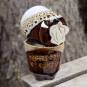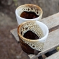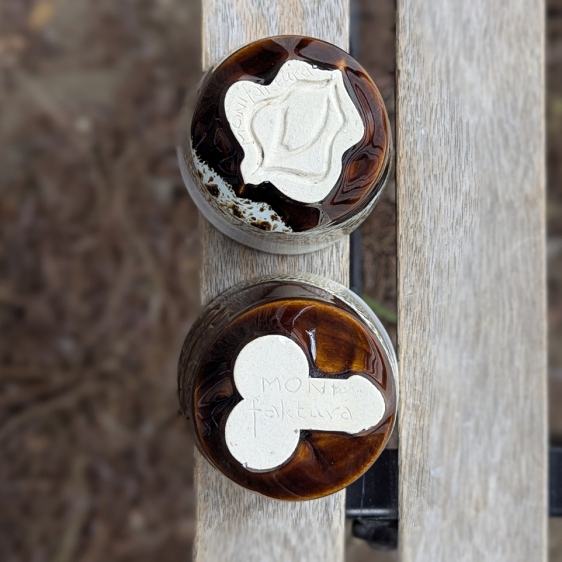 Czarka pokryta białym i głębokim brązowym szkliwem. To połączenie jest zachwycające. Każde naczynie jest unikalne, dlatego układ szkliw może się nieco różnić na Twoim egzemplarzu. W poszczególnych naczyniach kolory mogą być mniej lub bardziej intensywne- uroki rękodzieła.