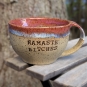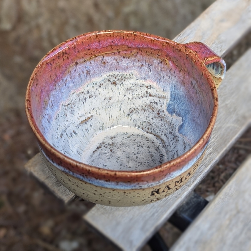 NAMASTE BITCHES to ręcznie wykonany kubek, który powstał z pięknej, piegowatej gliny. Jest tak urokliwa, że nigdy nie szkliwię naczyń w całości, żeby nie zakrywać jej wdzięków.