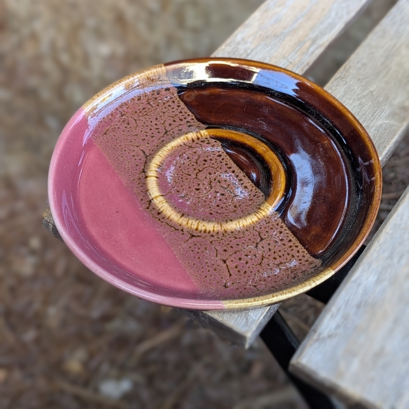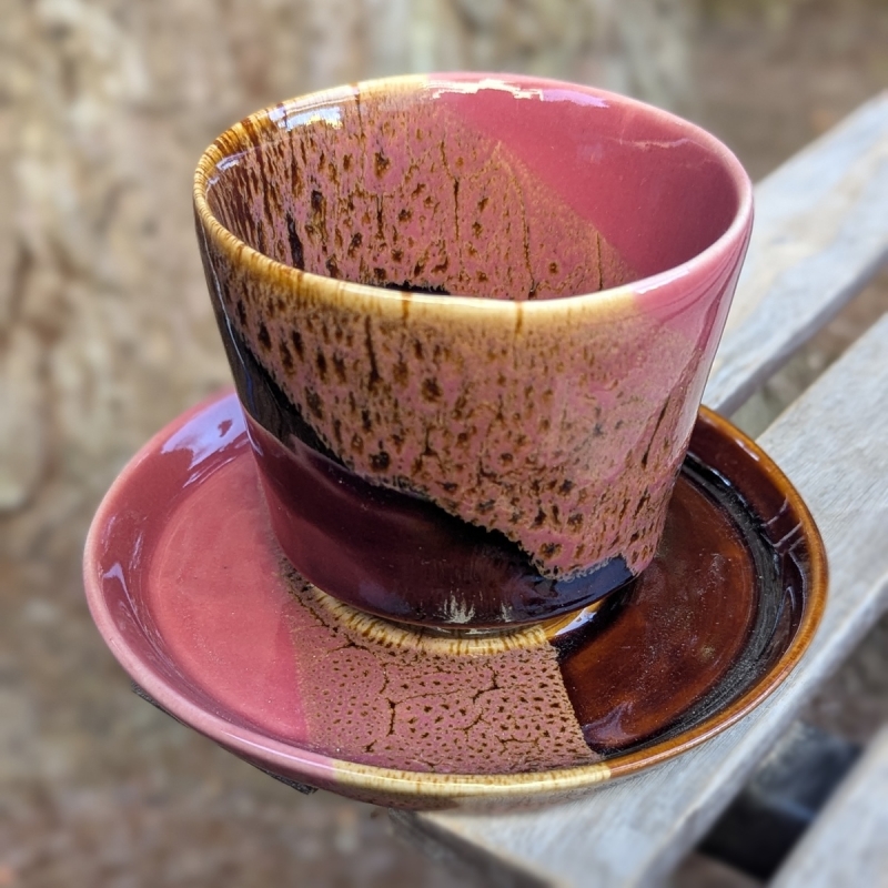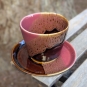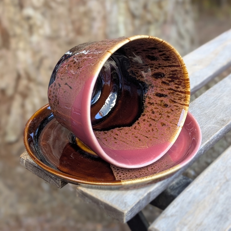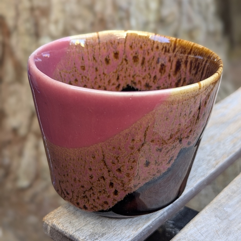 Czarki są minimalistyczne w swej formie- trapezowy kształt, wygodne w użytkowaniu. Przepiękne szkliwienie różowym i brązowym szkliwem tworzące niepowtarzalne wzory. Każdy wzór jest unikalny.