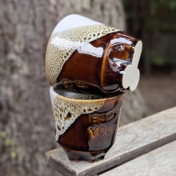 Milo mi, że czarki z serii "*ujowe, ale stabilne" oraz "dowCIPne" tak dobrze się przyjęły i od razu stały bestsellerem :) Dlatego zrobiłam nowy rozmiar- espresso. Nie trzeba jednak pić z niej tylko kawy- może służyć jako kieliszek na pigwówkę, podstawka na jajko, co tylko chcesz.  Ale oprócz...