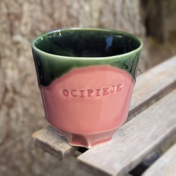 Czarka ceramiczna w zestawie z talerzykiem. Czarki są minimalistyczne w swej formie- trapezowy kształt, wygodne w użytkowaniu. Przepiękne szkliwienie różowym i brązowym szkliwem tworzące niepowtarzalne wzory. Każdy wzór jest unikalny. Czarka idealna na kawę, napary, herbatę, ale również drinki...