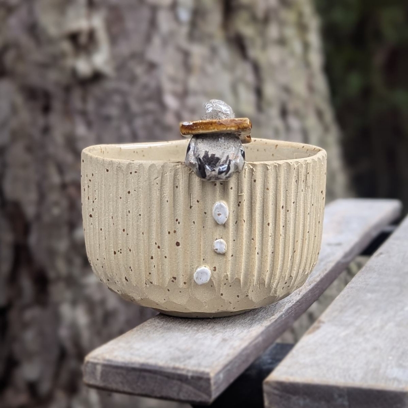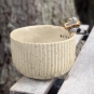 Czarki są lepione ręcznie z jasnej, piegowatej gliny. Wnętrze pokryte transparentnym szkliwem, ścianki zewnętrzne pozostawiłam surowe, nieszkliwione, dzięki czemu poczujesz w dłoni lekko szorstką, aczkolwiek nadal przyjemną, naturalną glinę.